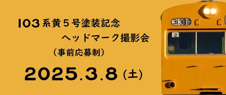 なお【103系黄5号塗装記念 ヘッドマーク撮影会】は参加費が必要な事前応募制イベントです。イベントの詳細については ポッポの丘公式ホームページ または( こちら )をご確認ください。