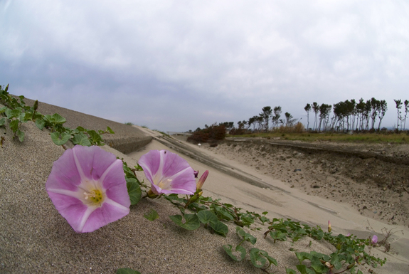このように、わずかに生き残った海辺の植物たちは、茎を伸ばし、花を咲かせ、タネを付け、少しずつ殖えながらもとのように繁茂しようとしていました。(つづく)