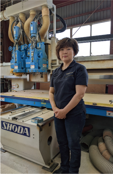 ▲写真に写る大きな機械は、木材加工に欠かせない「SHODA鉄工」の木工用NCルーターです。佐藤工芸では、2台のNCルーターが毎日がんばって働いてくれています。機嫌が悪いと、時々動かなくなりますが…^-^; (あと雷⚡が苦手です)