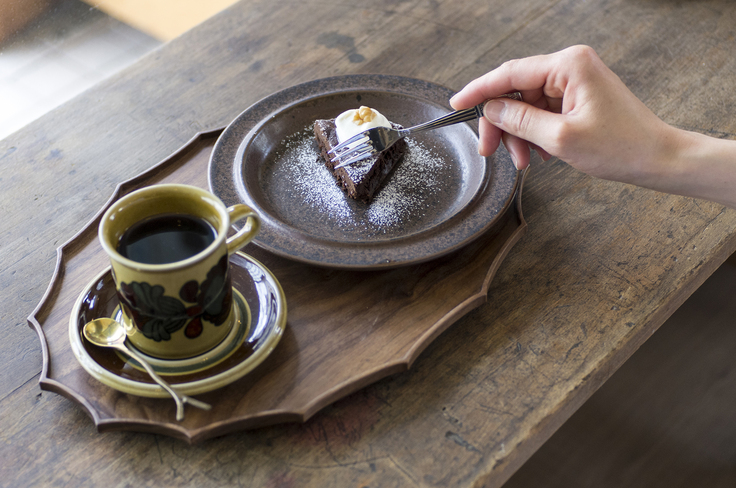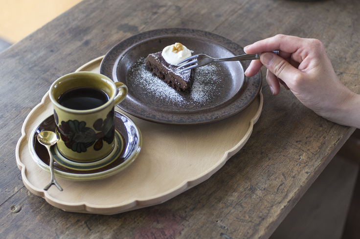 普通の木製トレイにはあまり見られない、凸凹がとてつもなく多いデザインです。磨きの工程が非常に大変で、手間に見合わない作り込みですが、木地の美しさ、柔らかな表現をお見せしたくて頑張っています。
