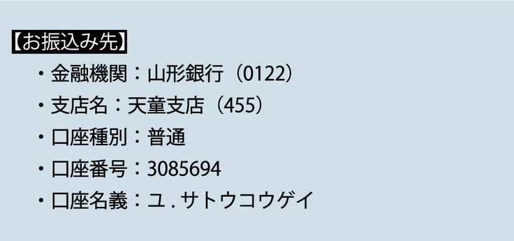 ※ご不明な点等ございましたら、佐藤工芸のメールアドレスにお問い合わせくださいませ。