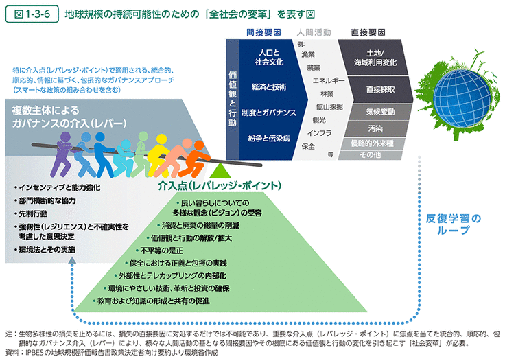 生物多様性の保全はこれまでの直接要因への働きかけから、間接要因への働きかけへが効率的という考えに移行しているようです。