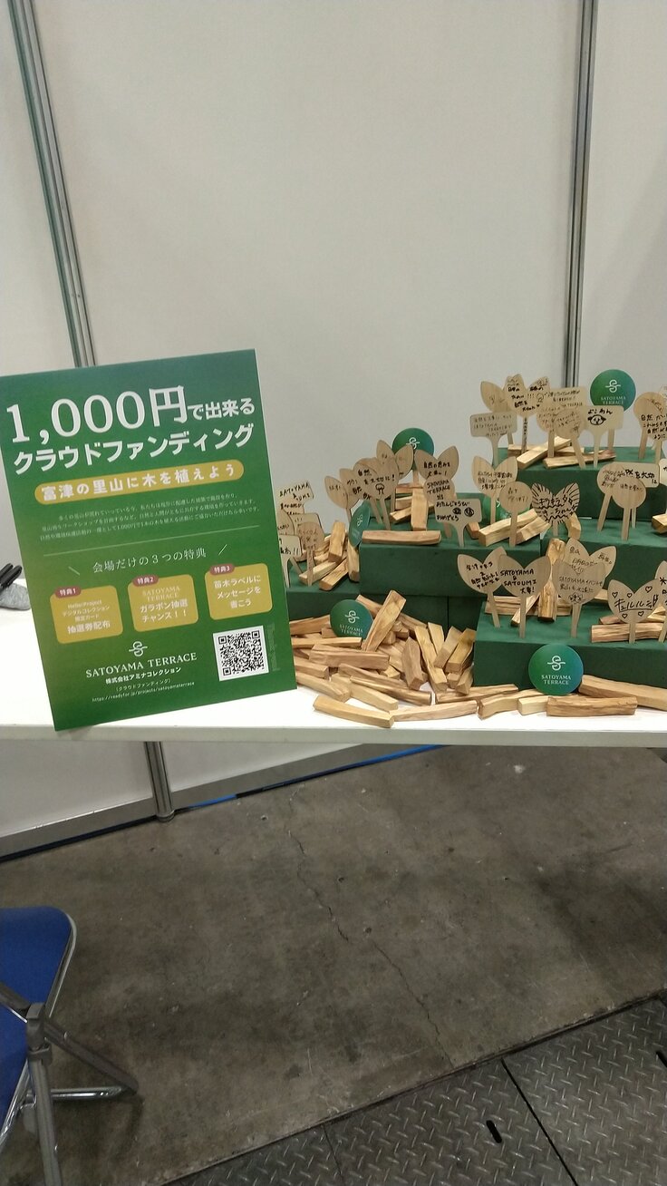 私たち、SATOYAMA TERRACEのブースでは 1000円でできるクラウドファンディングとして富津の里山に木を植えようをご案内し、 たくさんの方にご支援をいただきました!