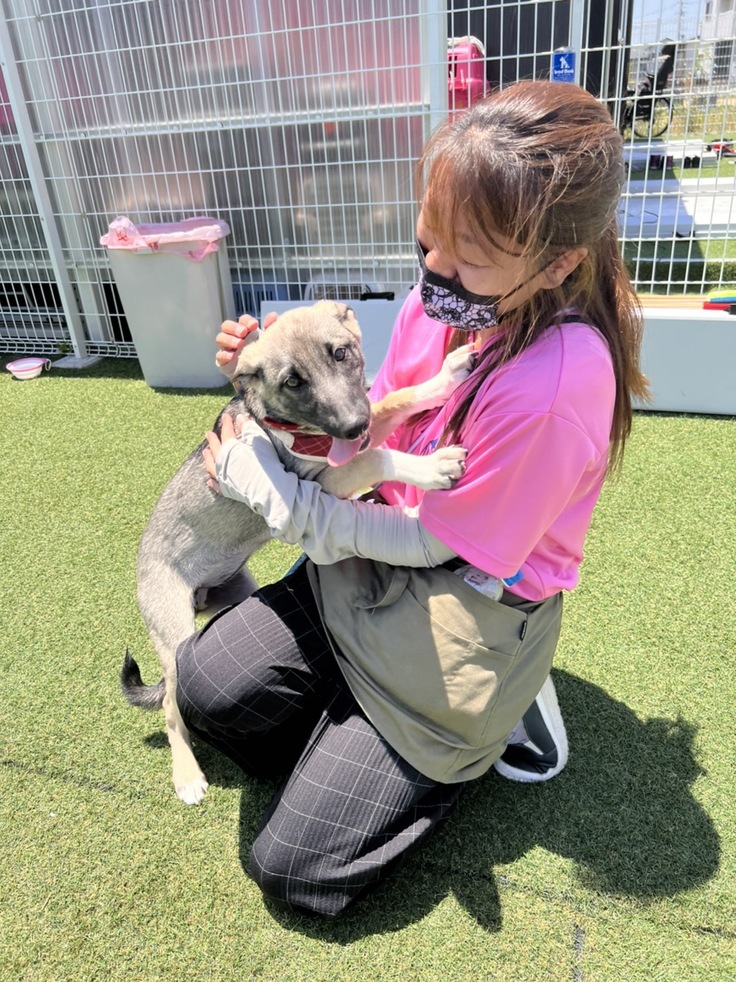 数年前、愛知県では人に慣れていない3か月以上の野犬は全て殺処分でしたが、所長さんの許可を得て毎日3時間犬舎で一緒に過ごしました。手からご飯を食べたら生きる望みができる…。ササミを湯がき砂肝やミルクを手にして60日間通った末にセンターから初めて野犬の成犬の保護ができるようになりました。私達は人の優しさを知って貰えるように沢山の愛情と時間をかけます。そして家庭犬になれるようにお散歩訓練をしています。