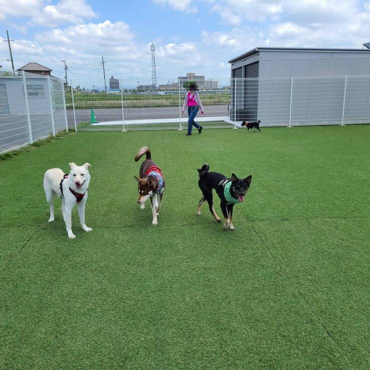 ・ドッグラン(大型中型犬用、小型犬用)の併設により、沢山の卒業犬が遊びに来てくれて、里親様との交流の場にもなっています。