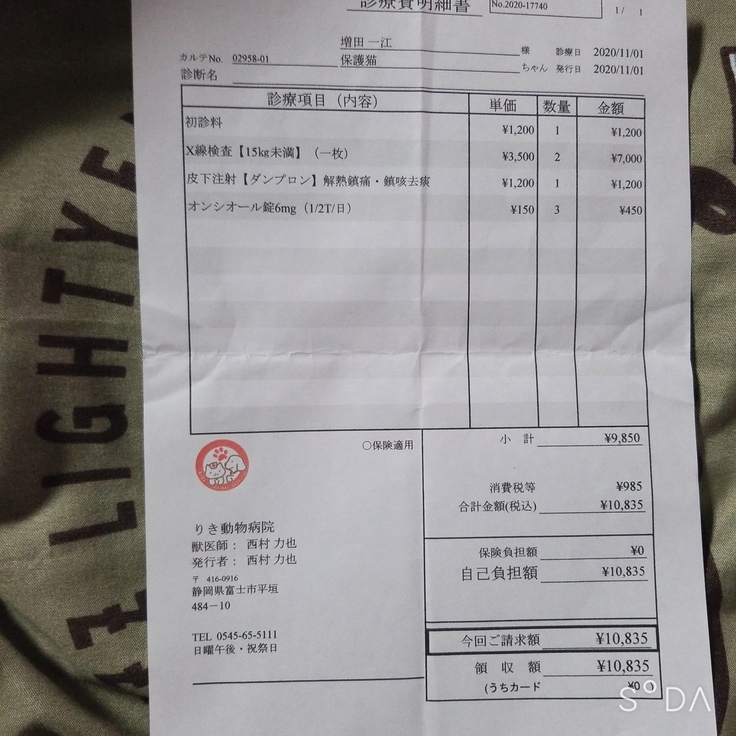 資金は、全てゴーの治療費に、ありがたく使わせていただきます。