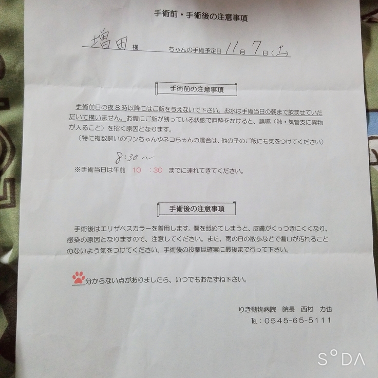1日でも早く手術を受けさせてあげたく、次の日すぐに病院へ行き、手術を申し込みました。