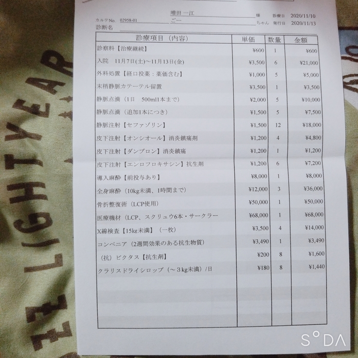「これだけの骨折ですと、金額も金額なので、手術せずに自然治癒って手もあります、おそらく足は壊死して、命にかかわってくると思います。ただ、手術受けても、なんらかの障害が残る可能性もあるので、一度ご家族で話し合って3日後に、決断されたら受診してください。」