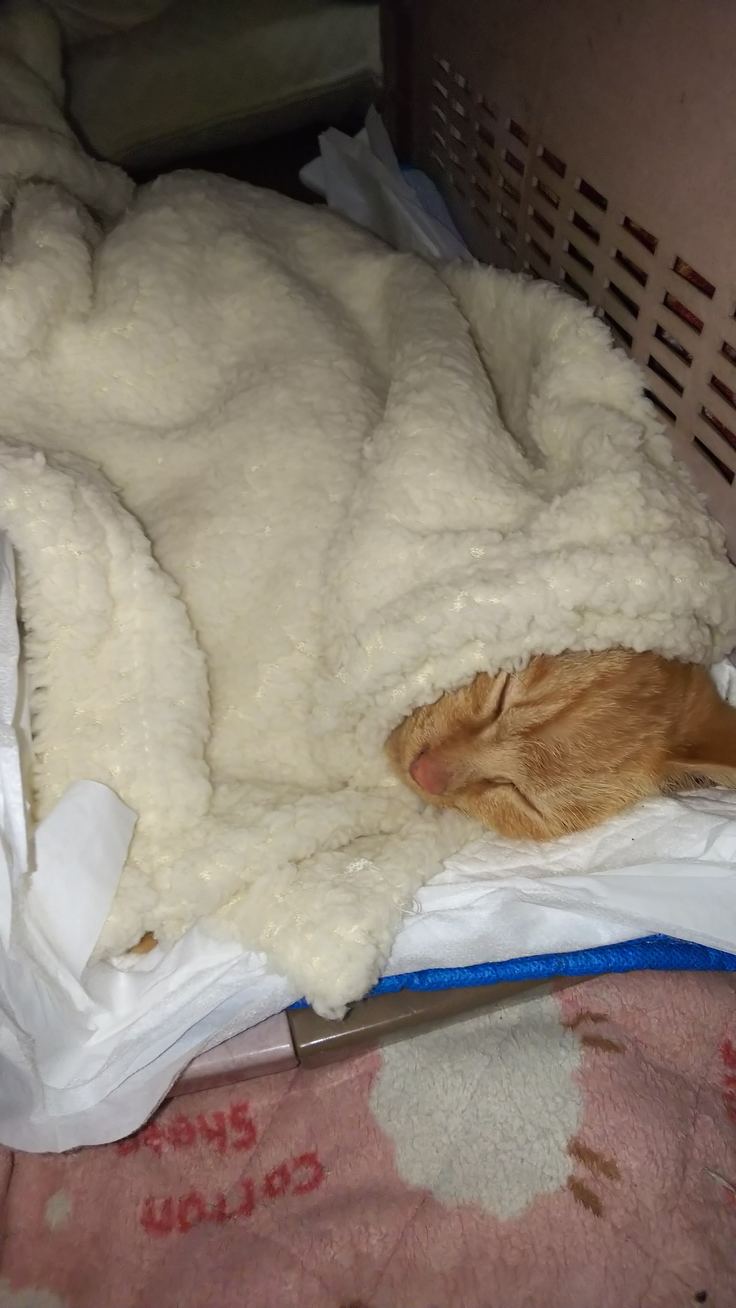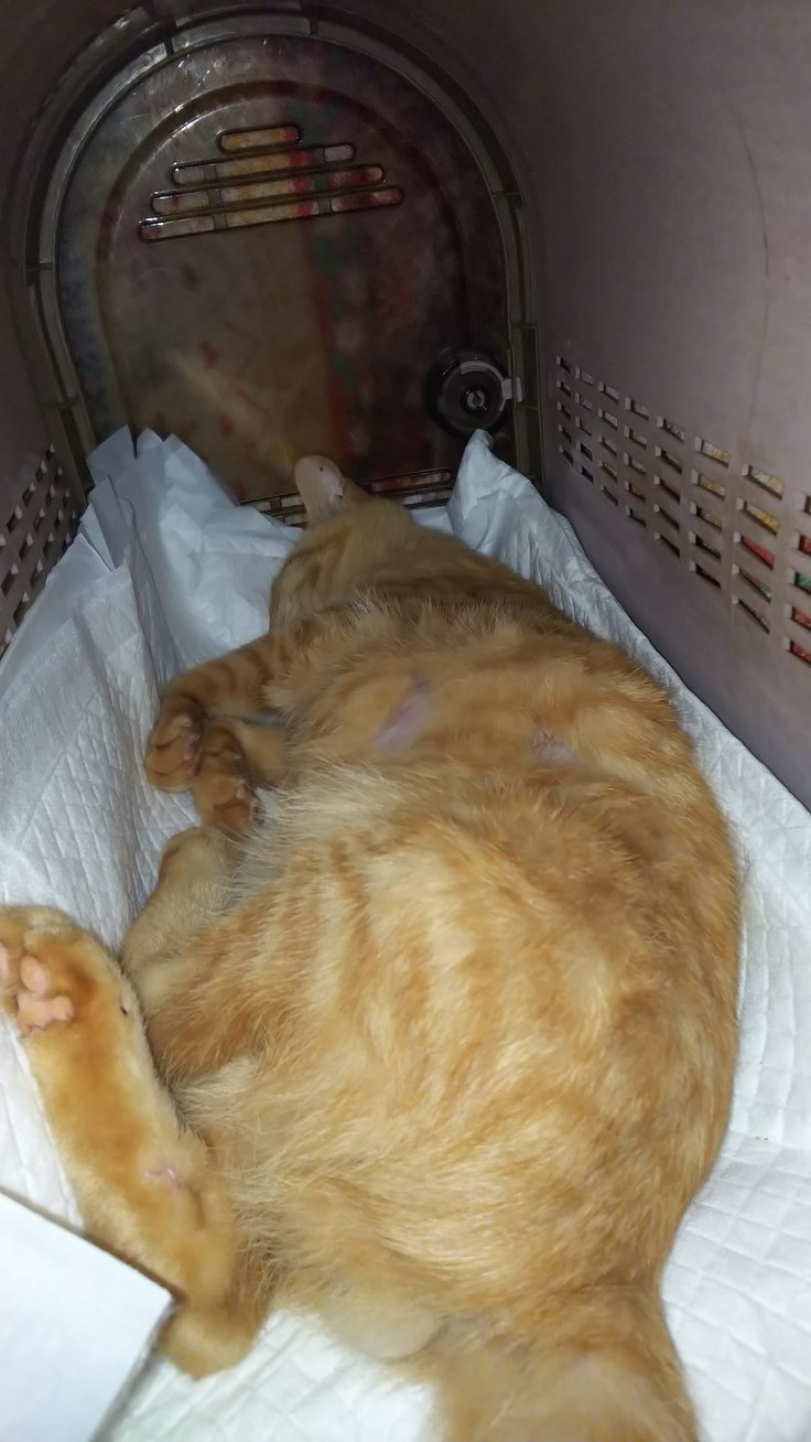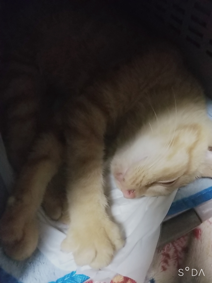 ご飯をあげたときも、立ち上がらず寝転がったままだったので、なんかおかしいと思い、次の日病院へ。