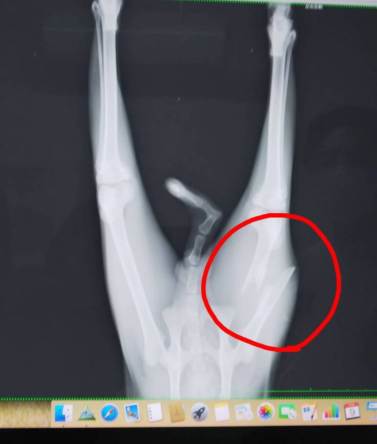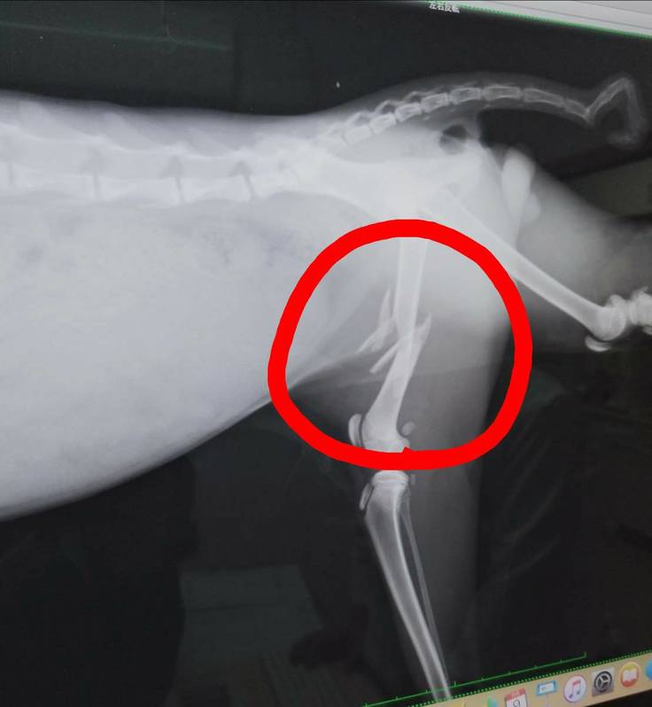 「おそらくバイクか何かに跳ねられたと思います。高い所からジャンプして、大腿骨折っちゃう子も、少なくないんですが、この折れ方だと、事故じゃないですかね」