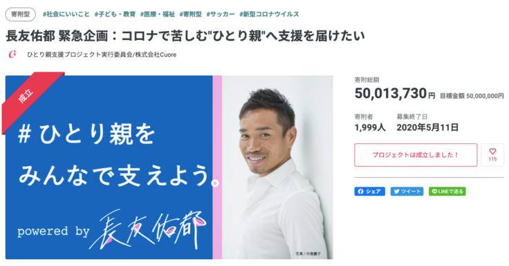 なんと、目標に掲げていた5,000万円を超える、50,013,730円の寄附が1,999名の方から集まりました。