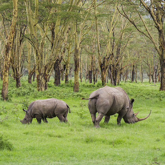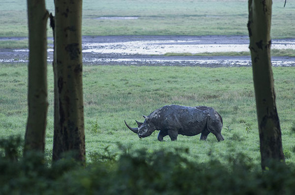 <ナクル湖国立公園のクロサイ。クロサイも数が減り非常に危険な状態です>