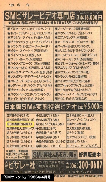 ・雑誌「SMセレクト」1986年4月号に掲載されていた広告