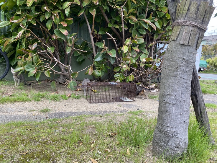 と考えて、保護初日(初日の様子はプロジェクト終了報告に記載しています)と同じように7台設置したもの、捕獲できたのは1頭のみ。初日が5頭捕獲できただけに、少し残念な結果となりました。