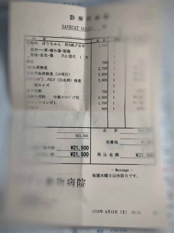 今日捕獲できた子は怪我をしていたので、いつもお世話になっている先生のところへ診てもらいに行きました。