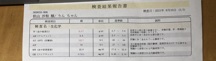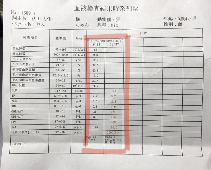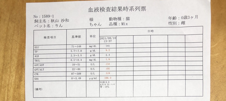 りんは貧血の数値が特にひどく、肝臓の数値も良くなかった為