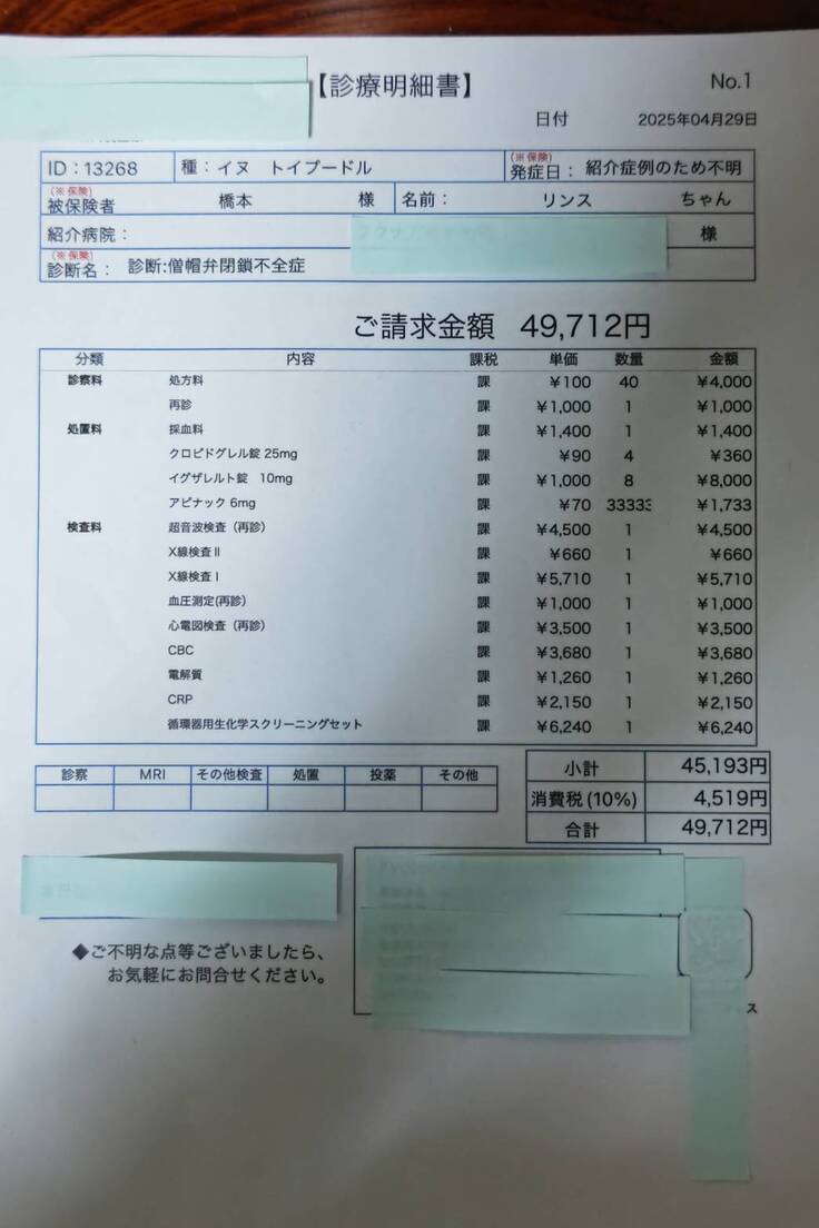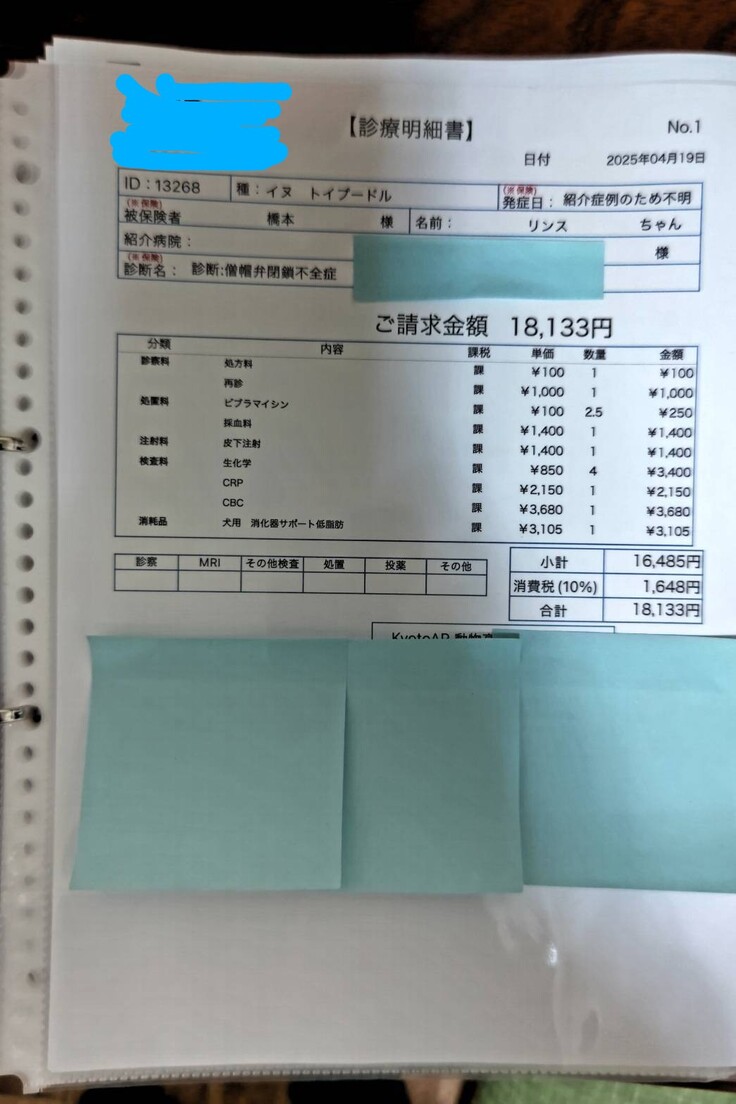 今度、6月中頃には、ペットクリニックの中にある、トリミングに行く予定です。術後半年は抗血栓薬を服用をするため、切り傷などの出血が無いように、注意をしながら行って頂きます。