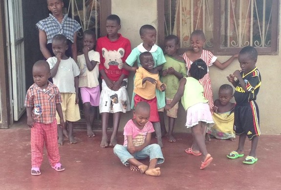 SAVOのホームの前に並んだSAVOの子どもたち。