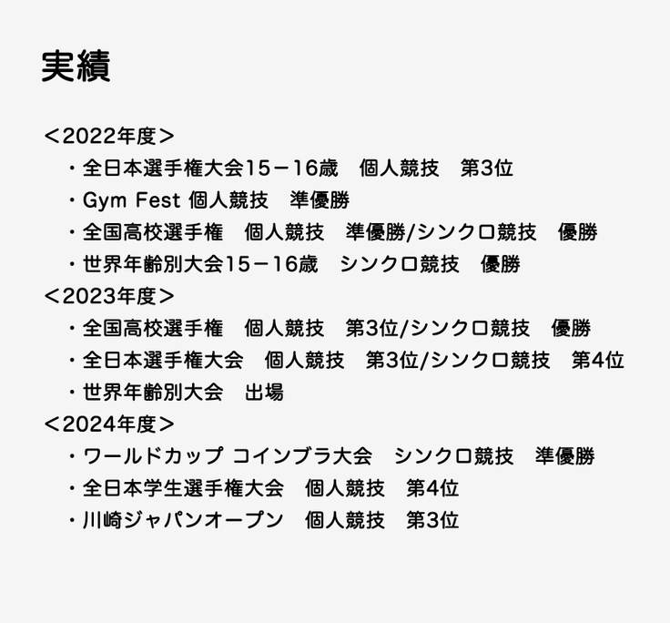 そのためには、まず私自身が世界大会やオリンピックといった大舞台で結果を出し、より多くの人にトランポリンを知ってもらうことが必要だと考えました。しかし、世界大会に出場するための費用は年々高騰し、個人の力だけではまかなうのが難しい状況です。そこで今回、クラウドファンディングを通じて、皆さまのお力をお借りしたいと思っています。私の挑戦が、トランポリンの魅力を広める第一歩となり、未来の選手や競技人口の増加につながると信じています。「トランポリン、面白そう!」「応援したい!」と思っていただけたら、ぜひご支援をお願いいたします!