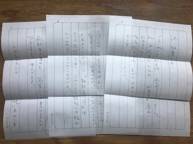 数週間後、私あてに茨木さんから封書が届きました。遅配?