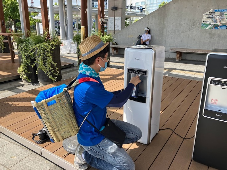 更に、2022年8月5日~9月4日の瀬戸内国際芸術祭の夏会期にあわせて、高松港に水道水を利用した給水機を設置。多くの観光客や、炎天下の中作業していたボランティアスタッフが利用しました。人の目につく場所に設置することにより、認知度が上がり、利用頻度が高まること、マイボトルを携帯する人が増えることを改めて確信した取り組みでした。