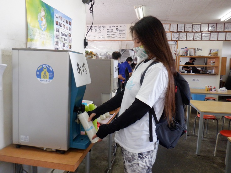 ペットボトルの利用を少しでも減らしたいと、アーキペラゴはマイボトル持参を呼びかけました。しかし、夏場はマイボトルに入れた水を早々と飲みきってしまい、結局ペットボトルを買ってしまうという事態に。「空っぽになったマイボトルに給水ができるようになれば」。そこで、2018年に水を給水できるスポットを「給水スポット」としてマップ化し、ウェブサイトに公開。今では、うどん店やカフェ、ゲストハウスなどの民間給水スポット87カ所、公共給水スポット122カ所を登録しています(2023年1月現在)。