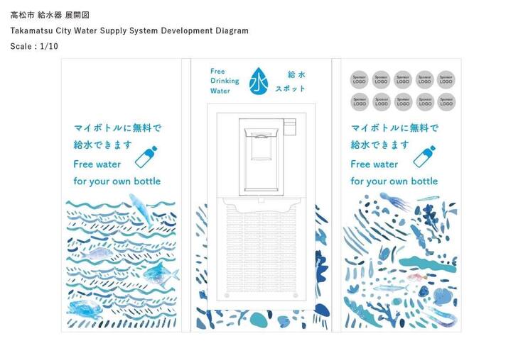 外側のデザインで高松らしさ・瀬戸内海の海の豊かさを表現します。ご協力いただいた方や企業様のお名前も掲示予定です(希望する企業・個人のみ)。