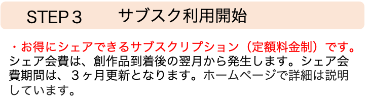 基本3ヶ月(6ヶ月・年間でもシェアできます。)