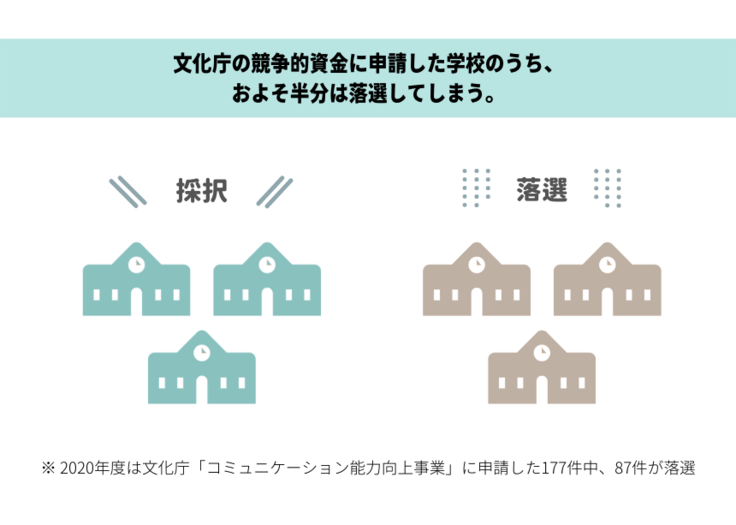 ※1 2020年度は文化庁「コミュニケーション能力向上事業」に申請した177件中、87件が落選しました。