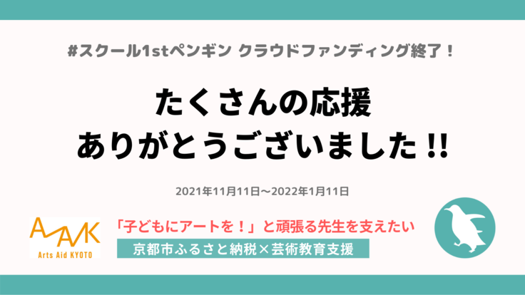 この度、フリンジシアターアソシエーションとして初めて取り組みました、子ども達にアートの授業を届けるクラウドファンディングの挑戦は、161人の方から、3,384,000円のあたたかいご支援をいただき、1月11日に無事に終了いたしました。