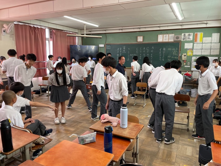 基本的には横の人に回すというルールでしたが、生徒の遊び心が発生し、「向かいの人に投げ渡す」という動きがいくつも生まれました。