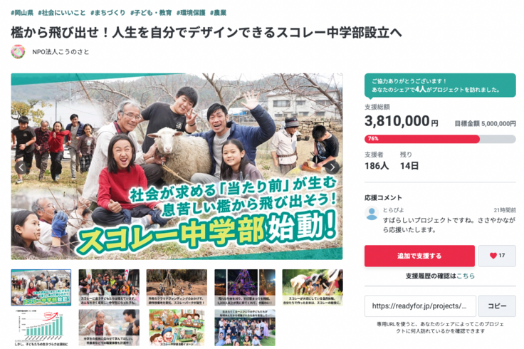 残り14日、子どもたちの成長に合った学びの環境を提供するため、最後まで応援よろしくお願いします!