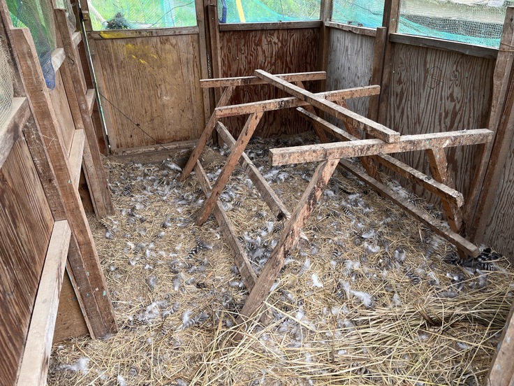 鶏を小屋に入れて鍵をかけていたのに、窓枠のメッシュが劣化していたのか、爪や牙で破られて、そこから鶏小屋に野犬が直接入ってきて、襲われていました。