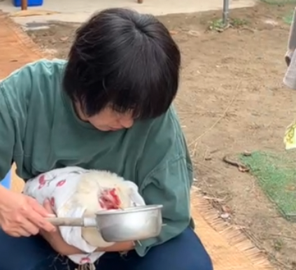 当日に、襲われた鶏の姿を見た子は涙を流しながら、怪我した鶏に手を当てて世話をしてくれました。