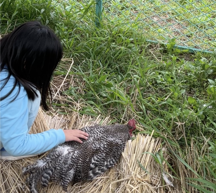 スコレーは平日は、スタッフが出入りしますが、土日が不在のため、私と家族で鶏の餌やりをしていました。