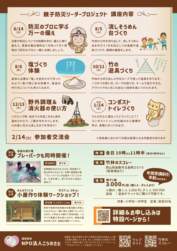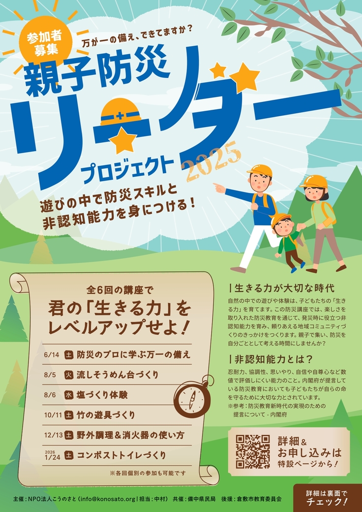 今年度の備中県民局のみらいづくり支援事業として、防災親子リーダープロジェクトを開催します。