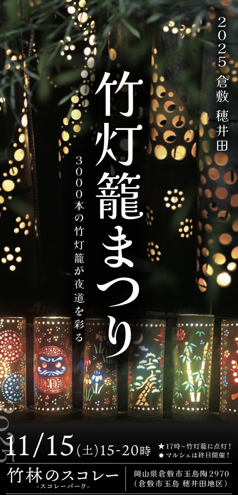 早速ですが、11月15日(土)に「倉敷ほいだ竹灯籠まつり」を開催します。