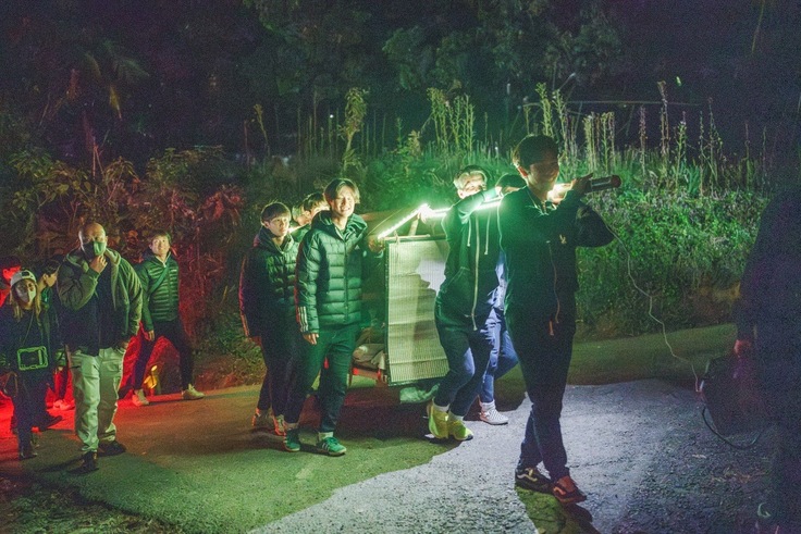 担いでくれているのは、IPU(環太平洋大学サッカー部)の学生さんたち。