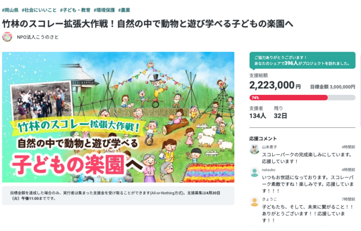 皆様のおかげで、目標の74%まで達成することができました。ありがとうございます!