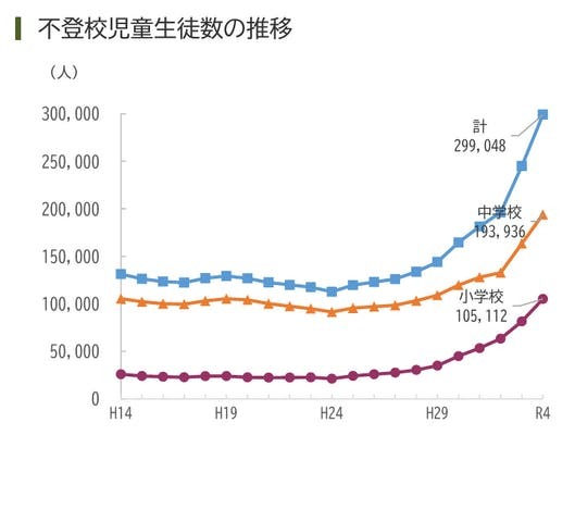 昨年、2022年のデータでは小中学生(高校生は除く)の不登校者数は延べ24万人でした。