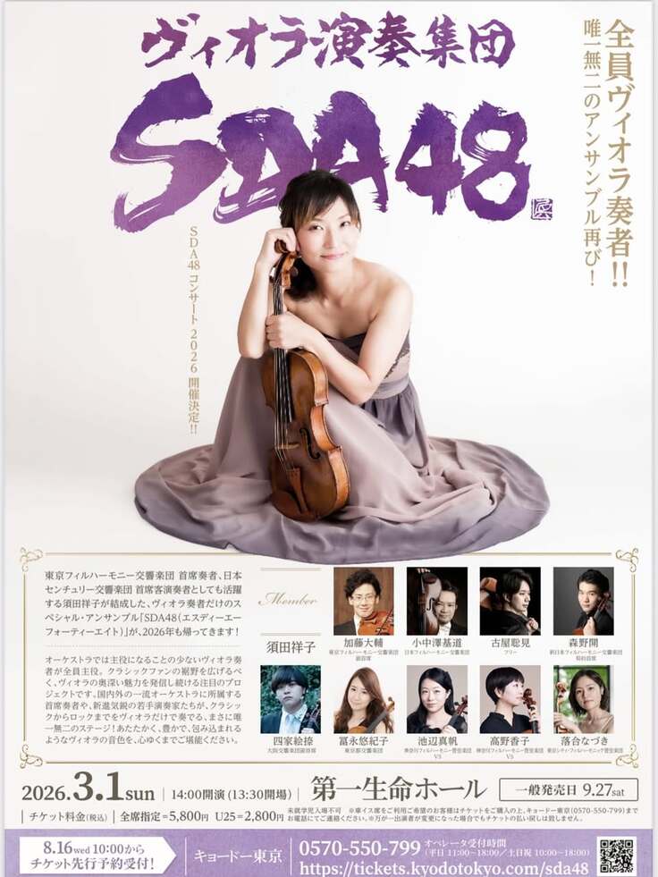 来年のSDA48の公演は2026年3月1日(日)14:00開演、前回と前々回お世話になった紀尾井ホールは改修中につき、