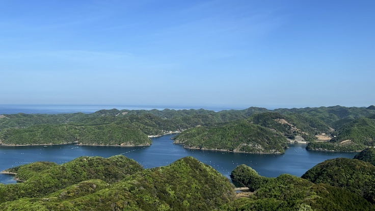 島の中央にある展望台からは万葉集にも出てくる美しい浅茅湾(あそうわん)を一望することができます。