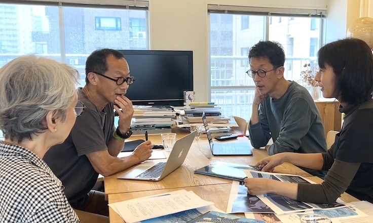 (とある日の制作ミーティング。松本嘉子さん、友永たろさん、江口絵理さんと)
