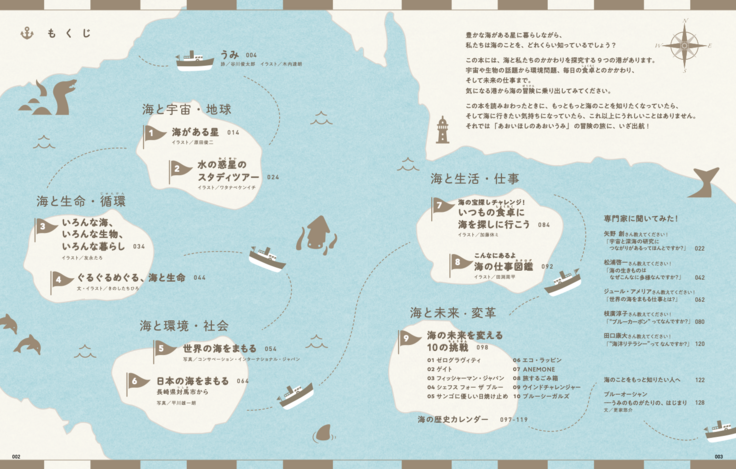 海のビジュアルブックらしい、かわいくて冒険心も感じられる目次ページができました!