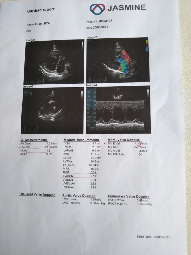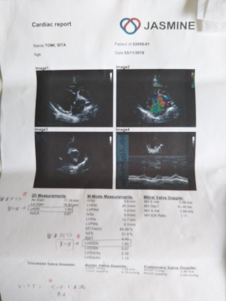 レントゲンとエコーの結果、僧帽弁閉鎖不全症ステージB1と診断されました。