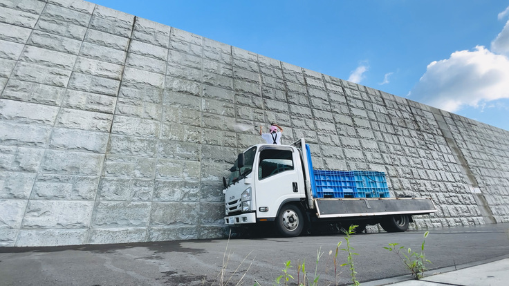 2019年にはじめて雄勝町に訪れた時、ちょうど復興⼯事の真っ只中、巨大な防潮堤が建設中でした。海岸沿いに3.5kmに渡って建設された、高さ最大10mの防潮堤。どこまでも続く灰色の大きな壁によって海が見えない風景が続いていました。