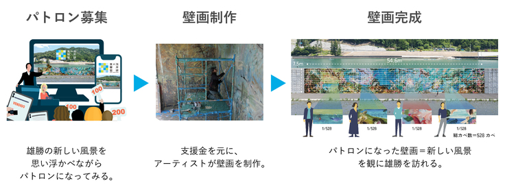 海岸線の美術館は、壁画作品=新しい風景のパトロンになるという参加の仕方をご用意しています。