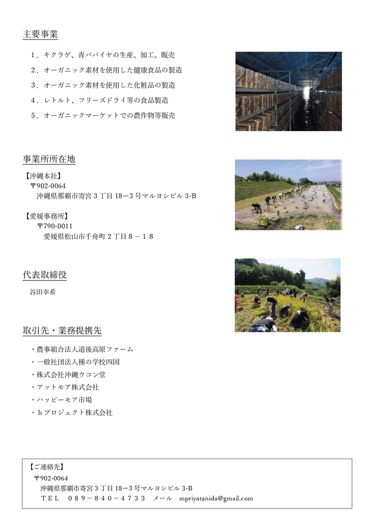 去年の8月沖縄に会社を作り、沖縄にて青パパイヤと月桃、きくらげの栽培を開始する為に今準備中です。