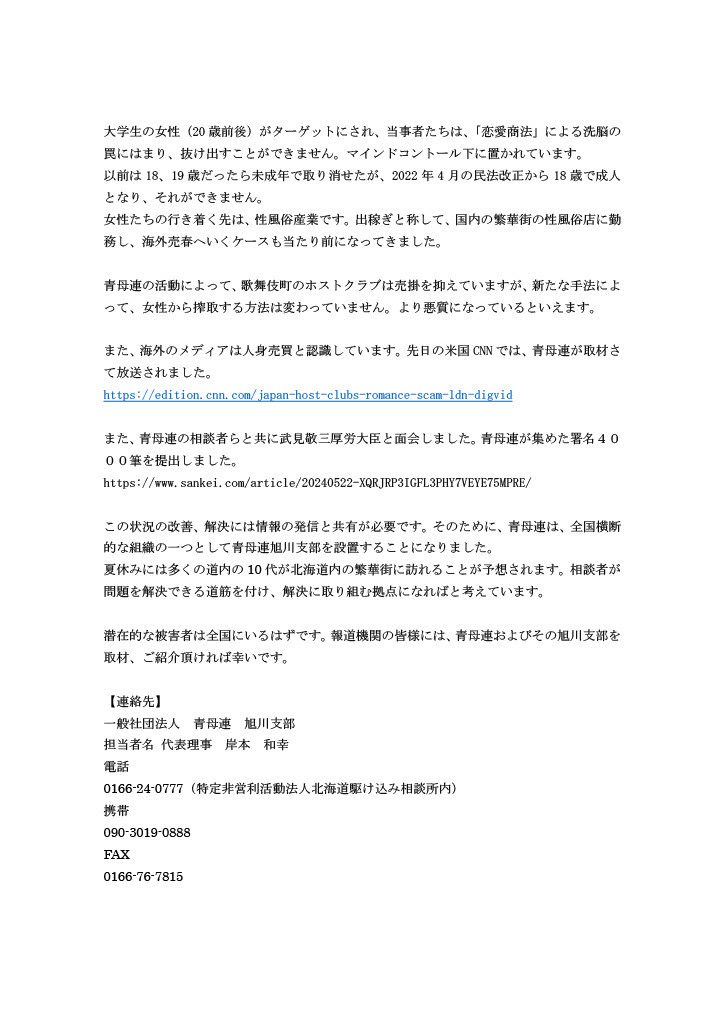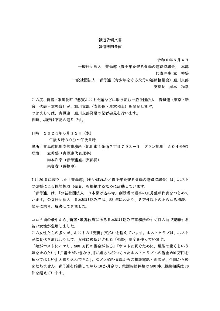 青母連は6月12日(木)に青母連旭川支部を設置致します。