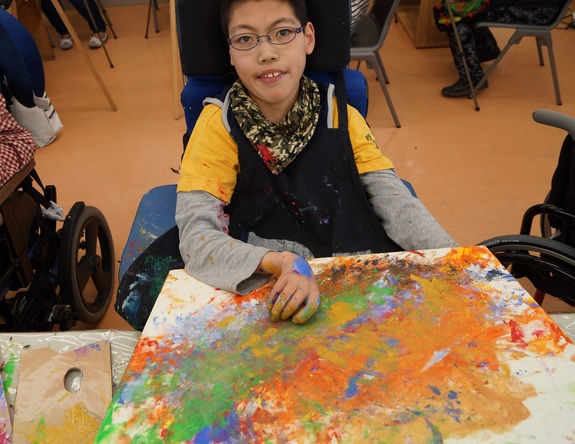 2007年、埼玉県で重度の脳性まひの子どもたちのアトリエ「成長する絵画」クラスがスタートしました。月2回のペースで制作を続けて9年。当初、小学生だった彼らは、現在、中学生、高校生の若者になっています。